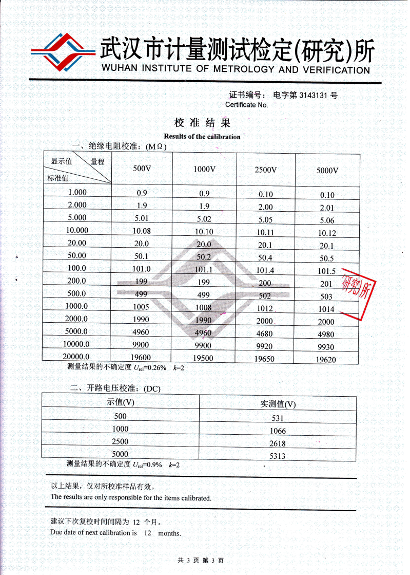 2500V 20000 1-1000 起始為1MΩ