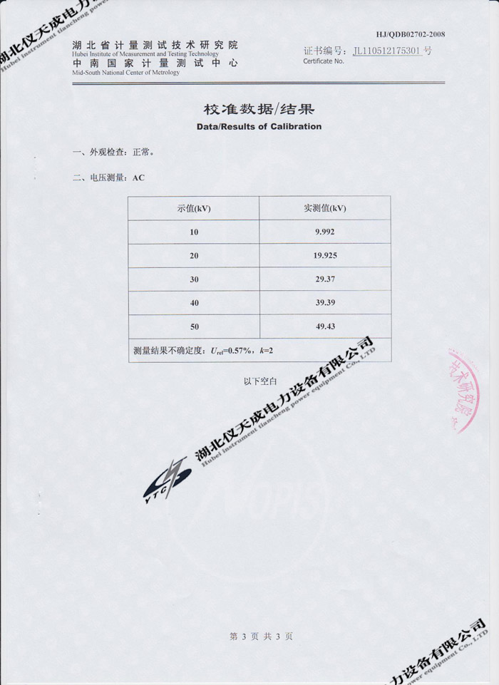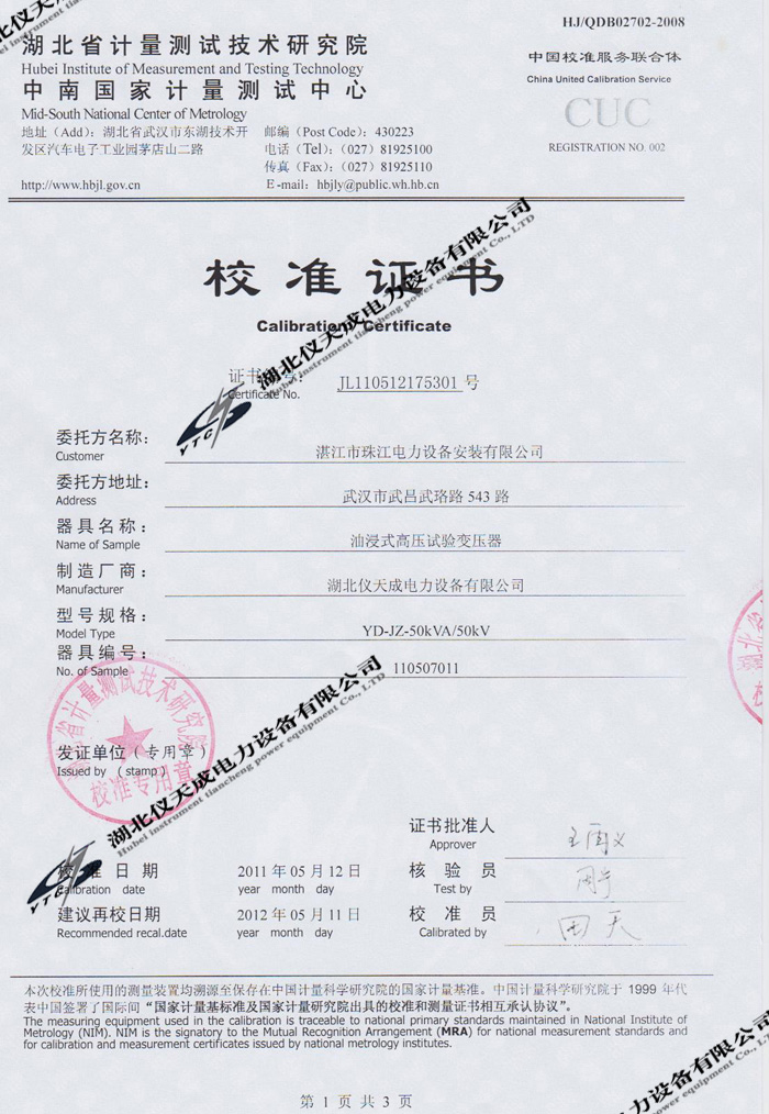 轉(zhuǎn)載:"YD-JZ-50kVA/50kV油浸式試驗(yàn)變壓器的資質(zhì)證書" 請注明來源于儀天成電力。 更多技術(shù)問題請致電儀天成電力客戶服務(wù):027-87876585,技術(shù)部專線:027-87876585,在線客服:719388481